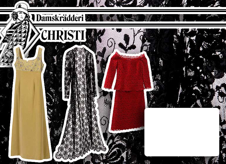 Vi syr upp kläder för alla tillfällen, vardagskläder, brudklänningar, kappor, dräkter, bröllop, kaftaner till blivande präster och allt möjligt. ”Jag har under mina 80 år aldrig fått så mycket beröm för en klänning" Kvinna, Lund